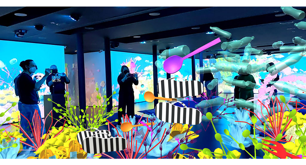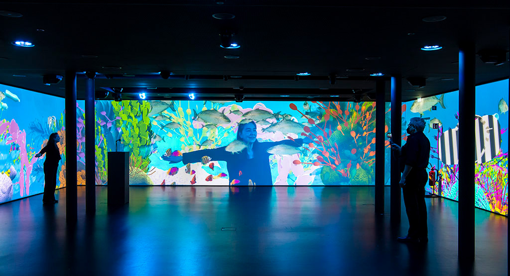 Forest Flux/Waldwandel AR livestream large projection installation.