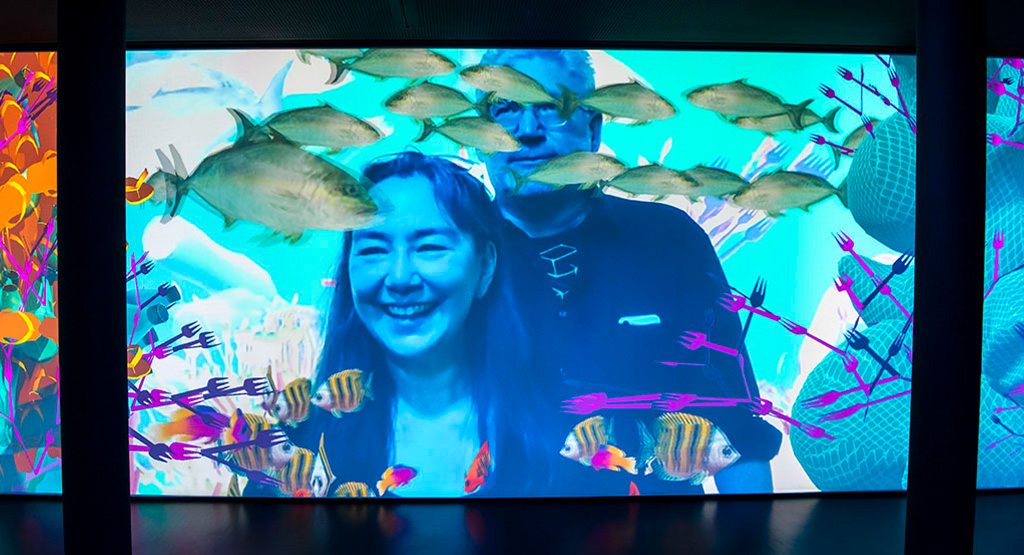 Forest Flux/Waldwandel AR livestream large projection installation.