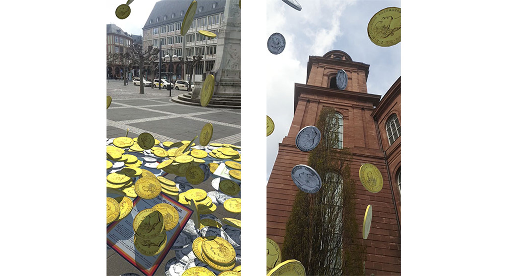 Waldwandel/Forest Flux AR installation in Place des Hauts Fourneaux, Belval/Esch-sur-Alzette, Luxembourg. Belval is a former steel works in Esch-sur-Alzette, Luxembourg, now converted to a stunning industrial monument site for the University of Luxembourg.